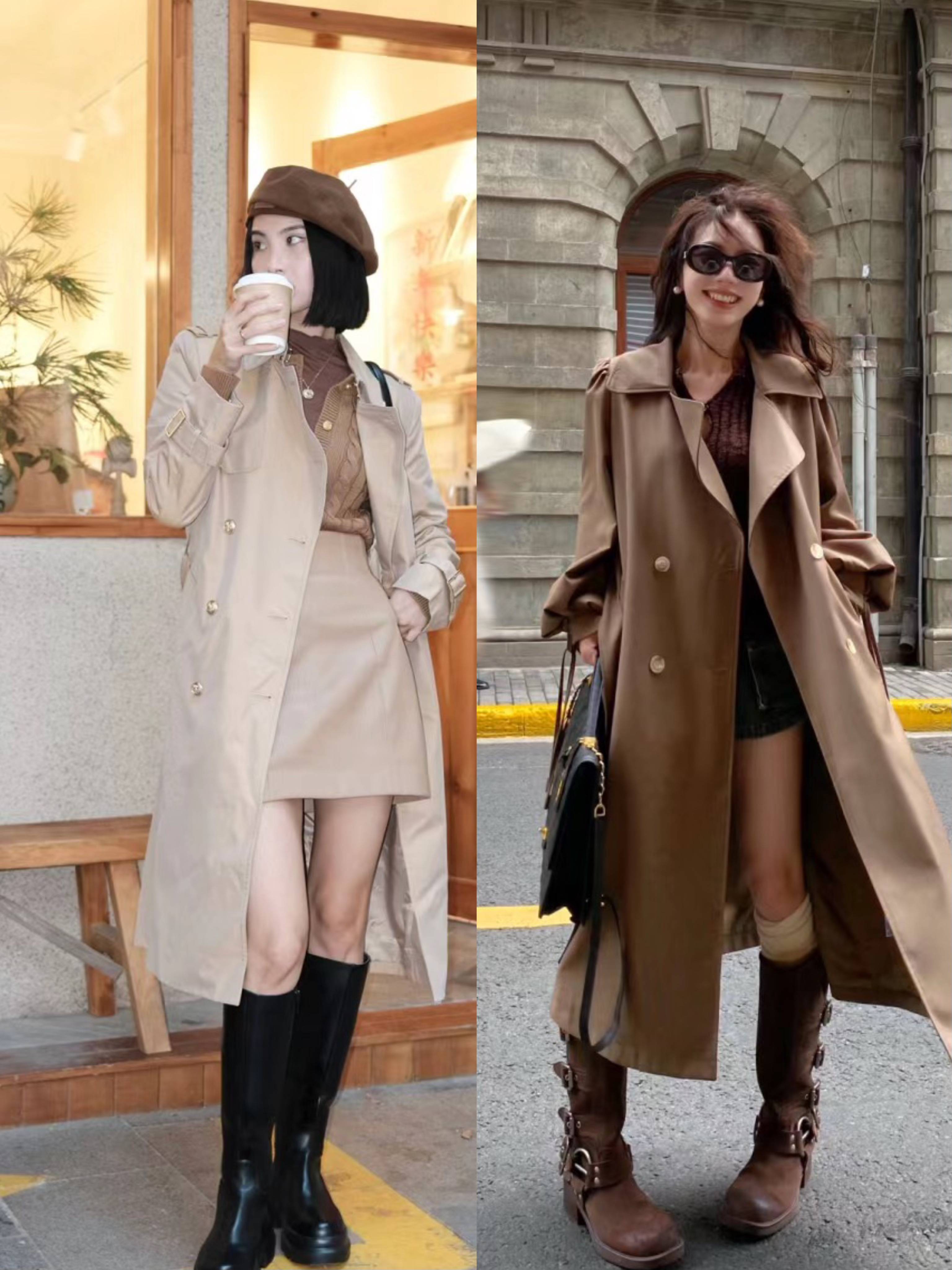 选择风衣+半身裙的搭配,除了可以搭配半身短裙以外,也可以搭配半身长裙。半身长裙是指裙摆没过膝盖的款式,更加的优雅大方、也更显气质。
