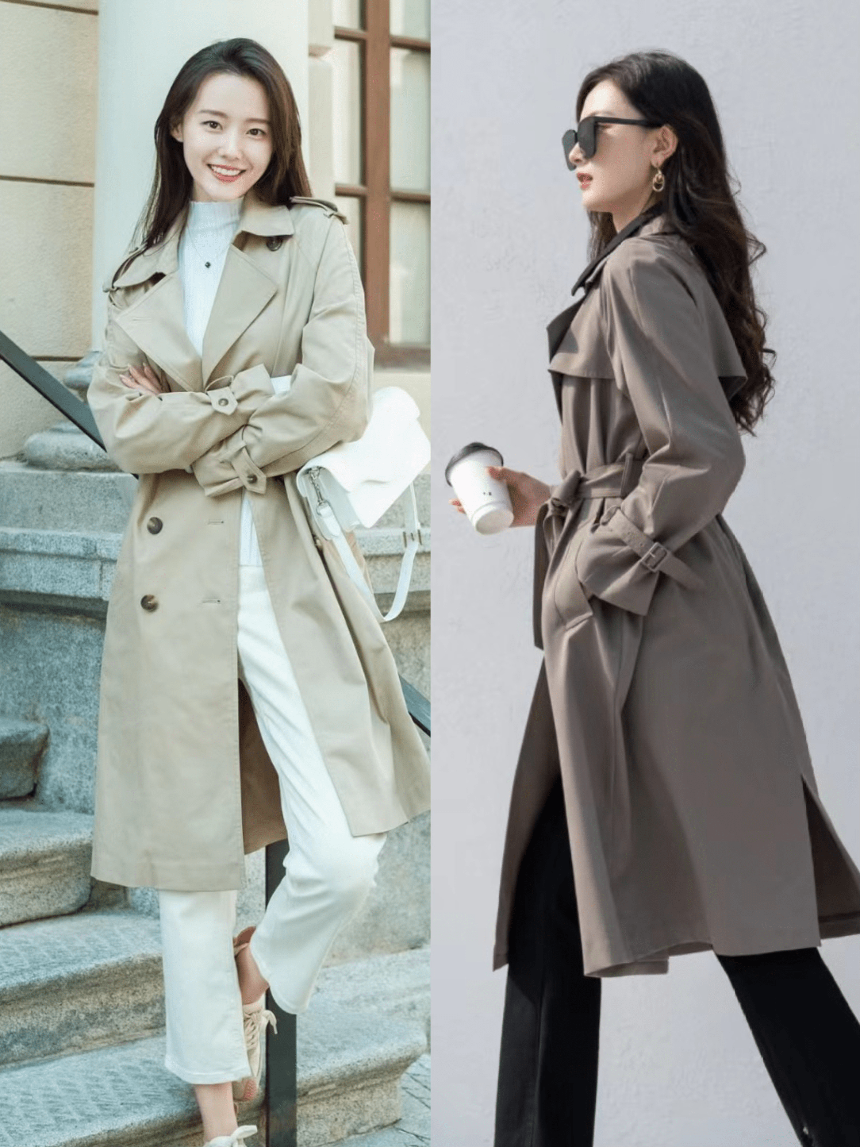 风衣的帅气、九分裤的清爽,二者的搭配也是非常经典的组合。当我们选择风衣+九分裤的搭配时,需要尽量注意色彩上的对比,呈现出更强的层次感。