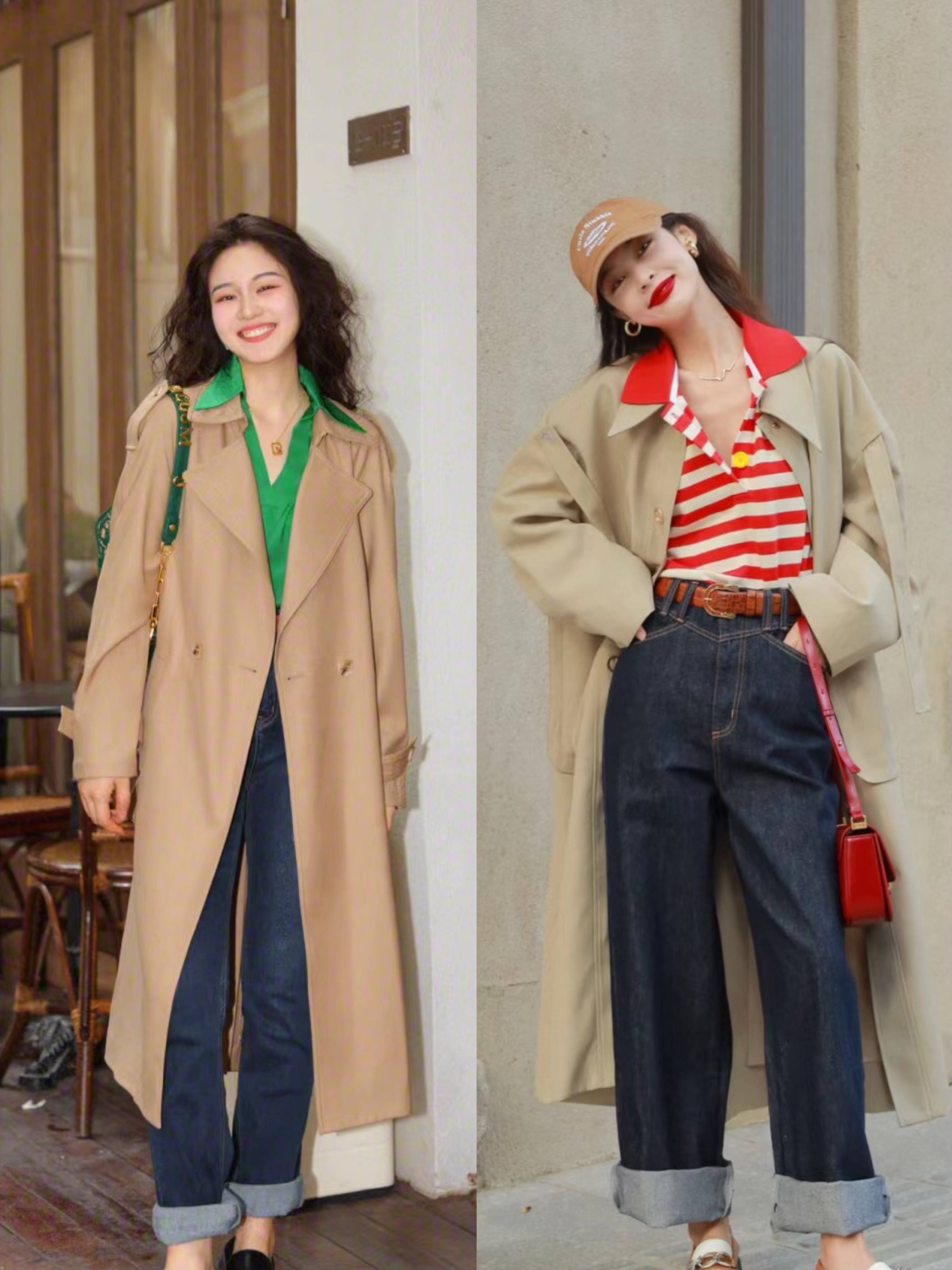 秋天穿风衣,建议大家别总是配鲨鱼裤了。鲨鱼裤虽然紧致修身,却也很容易暴露腿型。腿型上的小瑕疵,都会一览无遗。对O型腿、X型腿、罗圈腿都不够友好。
