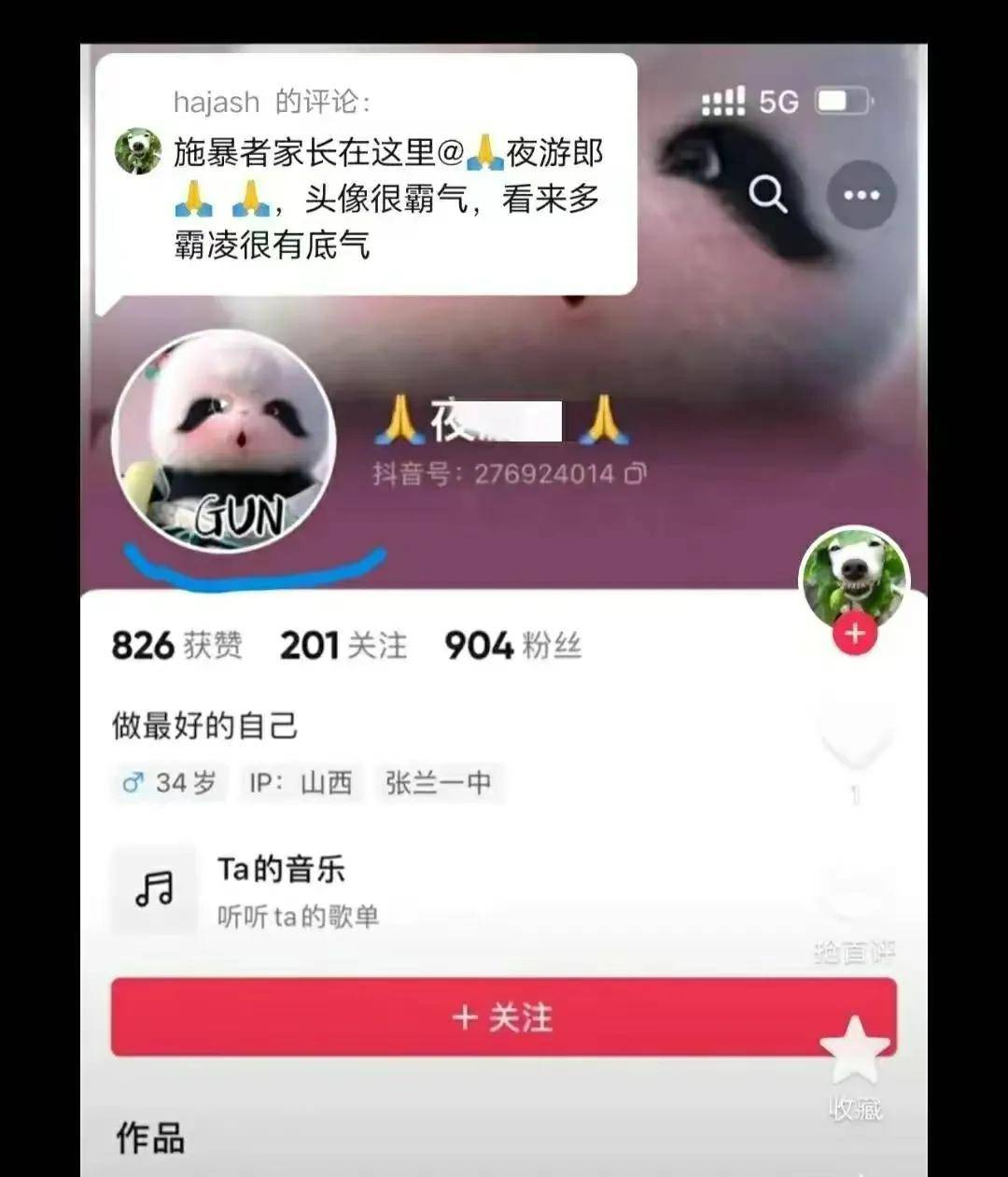 有热心网友,通过一些蛛丝马迹,找到了三个欺凌者中其中一个人的父亲的社交号。